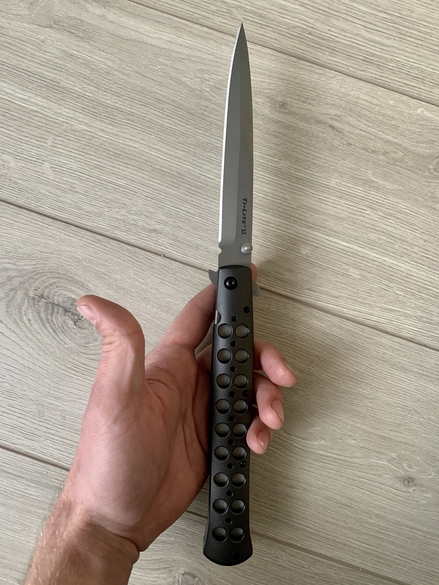 Складной нож Сold Steel Ti-Lite 6 создан по мотивам итальянских стилетов, является старшим братом Ti-lite 4. Несмотря на то, что это не выкидуха, в его конструкции нет пружины, он открывается быстрее автоматического, за счёт вейва. Специальный крючок на клинке позволяет раскрыть нож ещё до того, как он полностью вытащен из кармана.